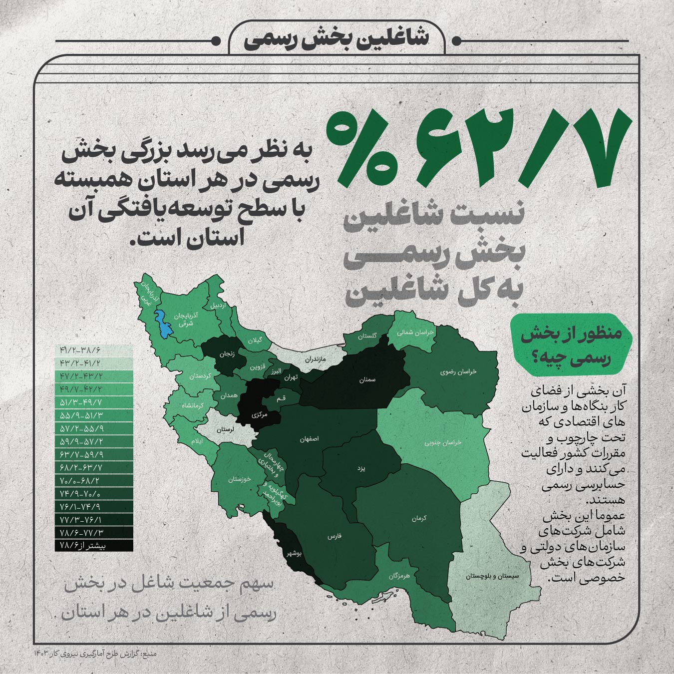 وضعیت اشتغال در بخش رسمی کشور نشان میدهد که منابع اقتصاد چگونه تقسیم شده است.